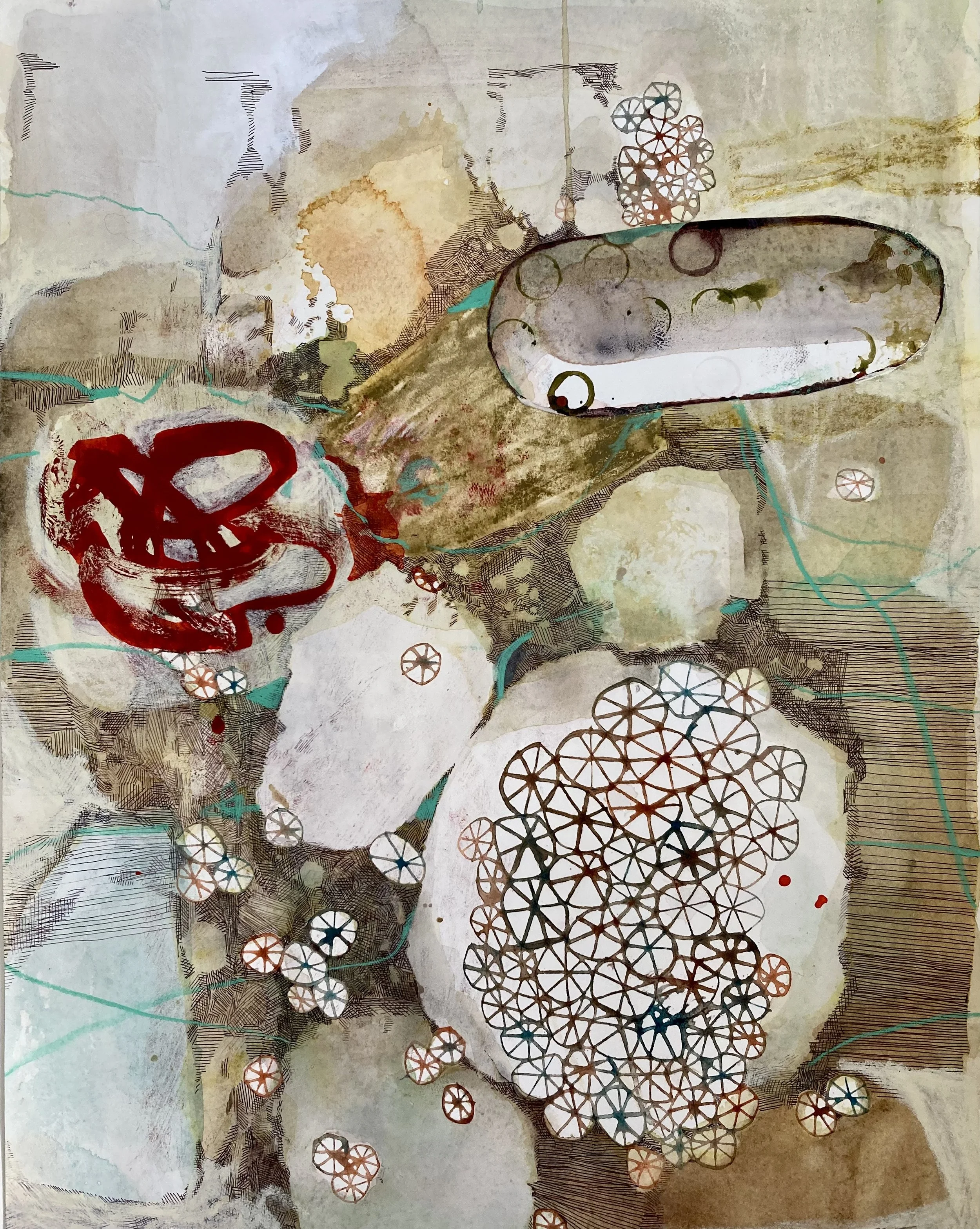 Melissa Zarem, Wild Yeast Hub, 14" x 18", mixed media on paper